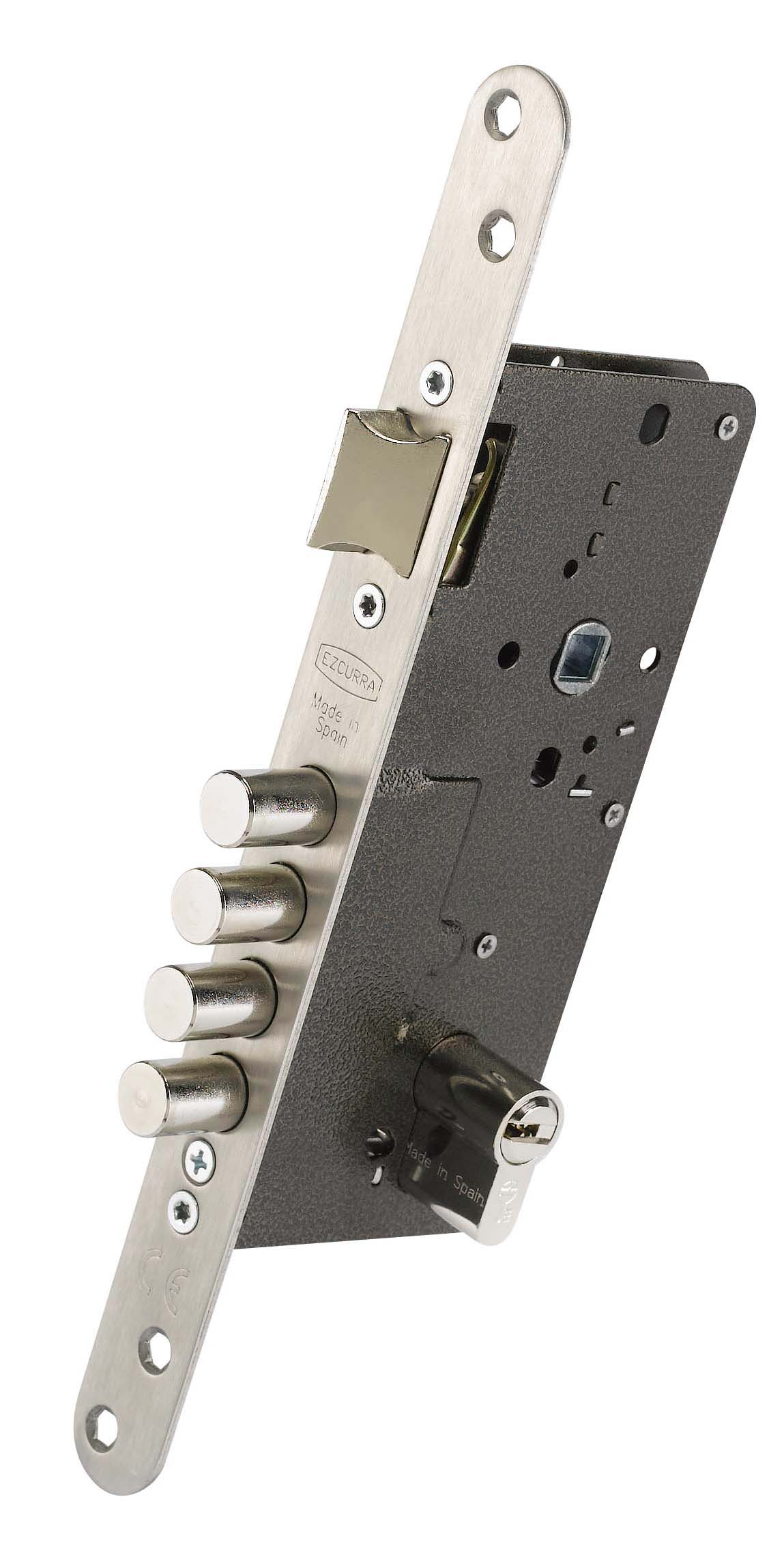 The Ezcurra Mod. 700B lock has four points, is designed for European cylinders and is compatible with EZ 420P or Al 85 cylinder protectors.
