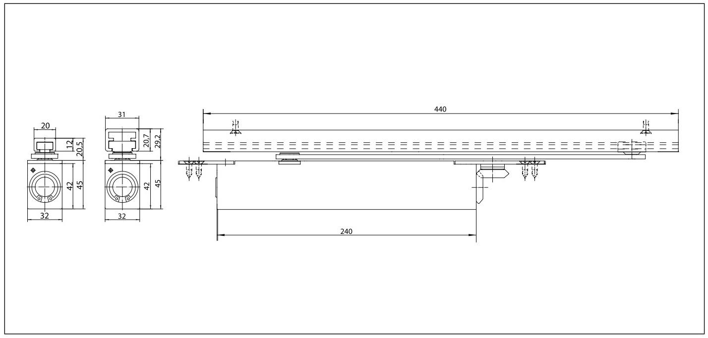 • El brazo deslizante sólo es visible cuando la puerta está abierta.