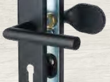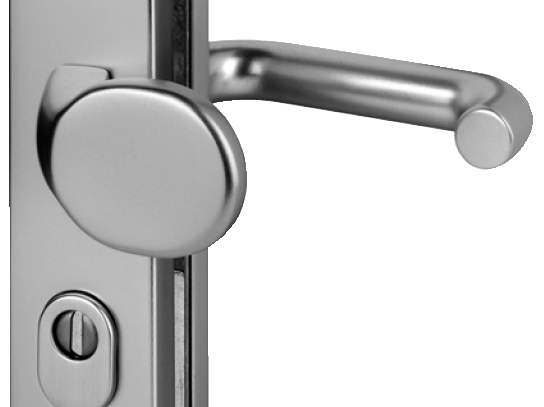 - Bijzonderheid: De behuizing van de rozet heeft een opening, voorzien van een draaiende anti-boorschijf, waardoor de sleutel in de cilinder kan worden gestoken. Aan de buitenkant heeft de plaat een treksluiting en aan de binnenkant een grendel.