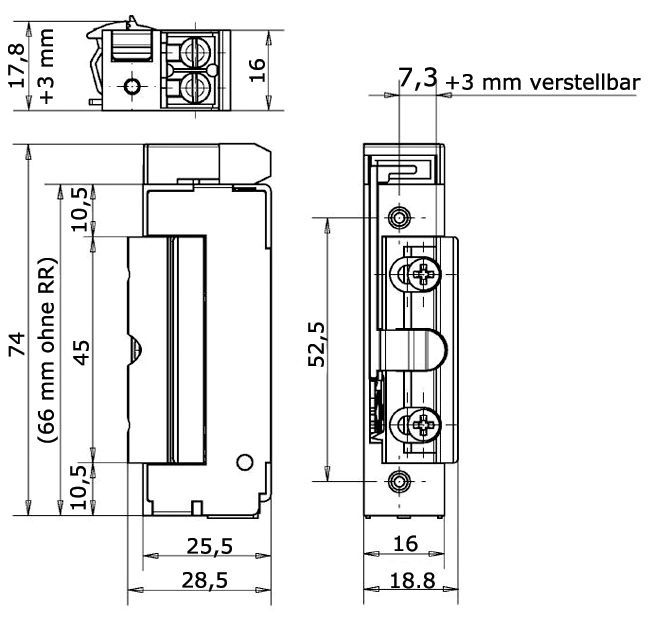- Horizontale aanpassing: halve draai instelbaar tot 3 mm.
