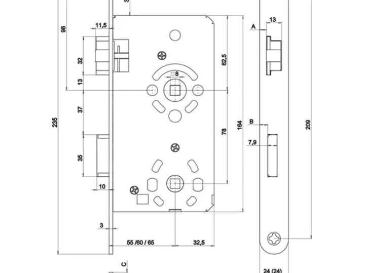 - Sleutelgat: 55 mm