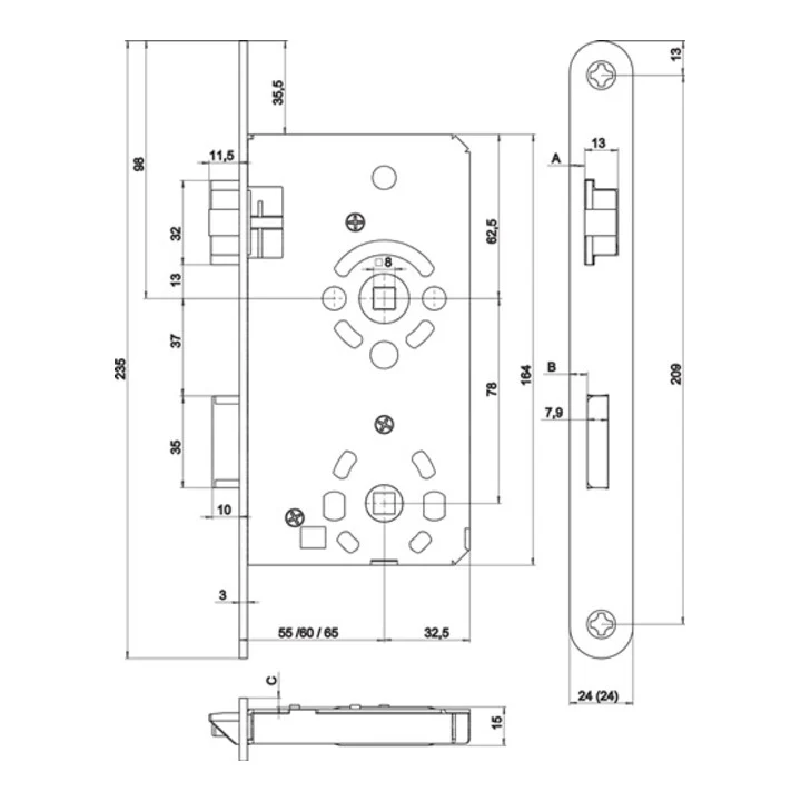 - Sleutelgat: 55 mm