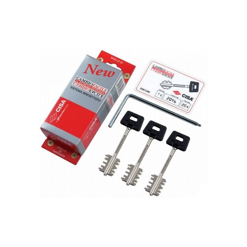 De dubbelbaard sleutels werken op een dubbele rij van 6 pikbestendige tuimelaars, waarbij elke tuimelaar onafhankelijk wordt geactiveerd door een spiraalveer. In combinatie met een speciale montageplaat van mangaanstaal biedt het Cisa Cambio Facile (0-6) slot een hoog beveiligingsniveau, in overeenstemming met de Europese normen UNI EN 12209:03.