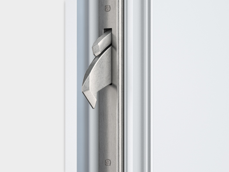 - Massieve haakbouten : Gemaakt van staal, met diepe krassen achter de sluitplaat voor meer weerstand tegen pogingen om het raam van het kozijn te scheiden. Beveiligd tegen terugduwen, zelfs als de hoofdgrendel niet is ingeschakeld.