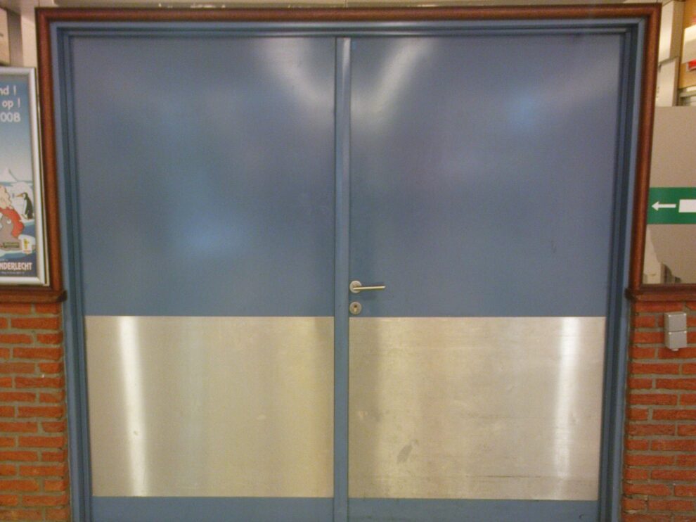 Ontworpen door : met een overlapping aan drie zijden en een dikte van ongeveer 60 mm. Ze zijn gemaakt van dubbelwandige massieve deurpanelen, bestaande uit twee 15/10 elektrolytisch verzinkte platen per vleugel.