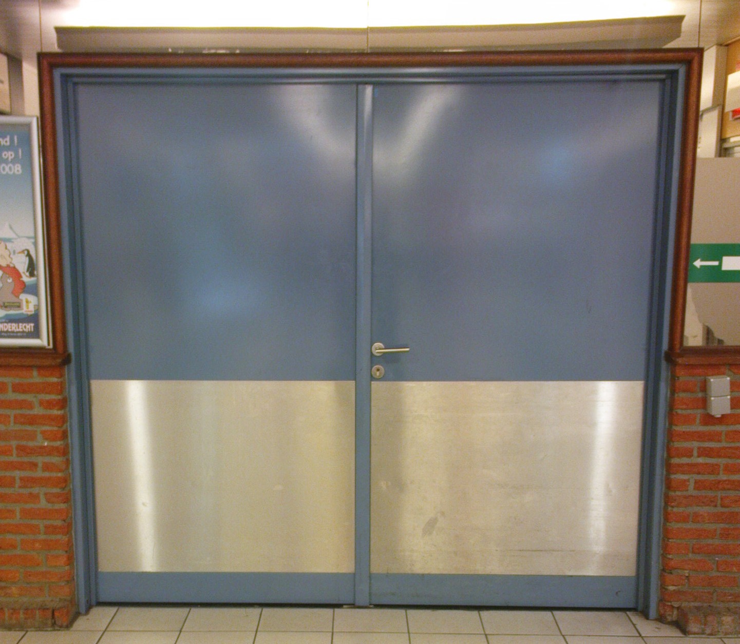 Ontworpen door : met een overlapping aan drie zijden en een dikte van ongeveer 60 mm. Ze zijn gemaakt van dubbelwandige massieve deurpanelen, bestaande uit twee 15/10 elektrolytisch verzinkte platen per vleugel.